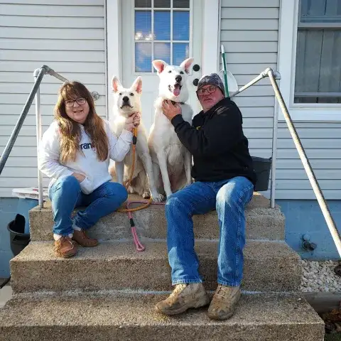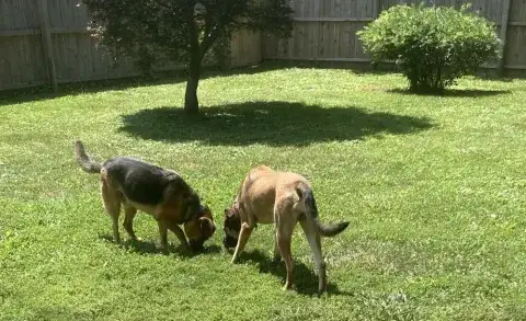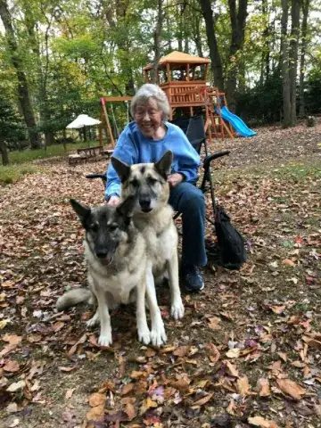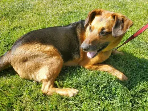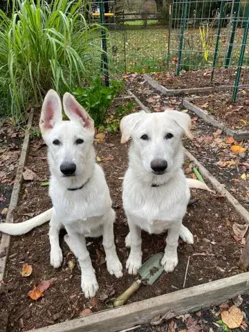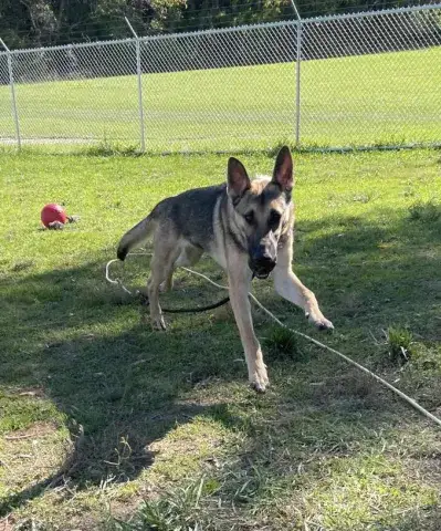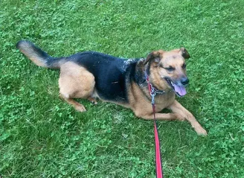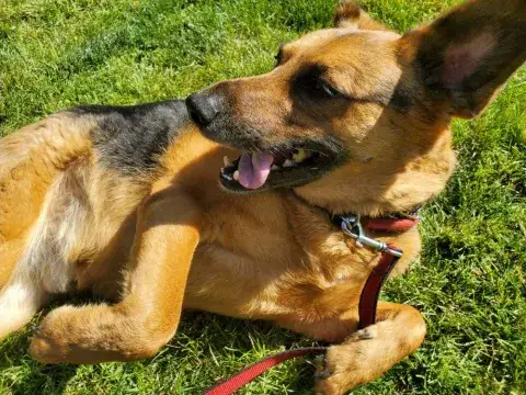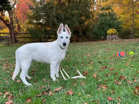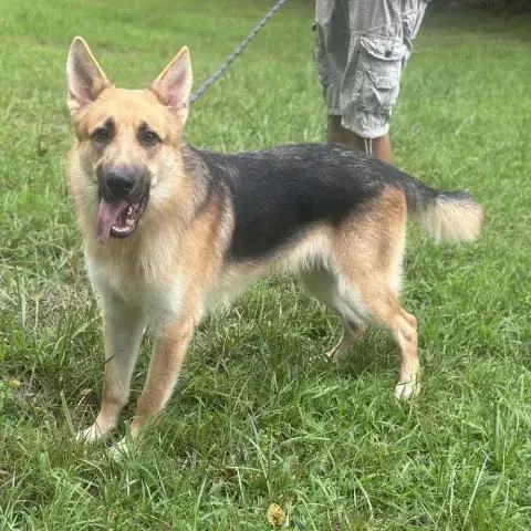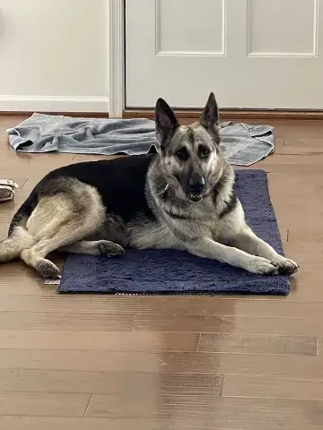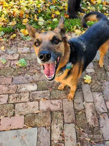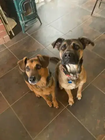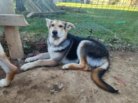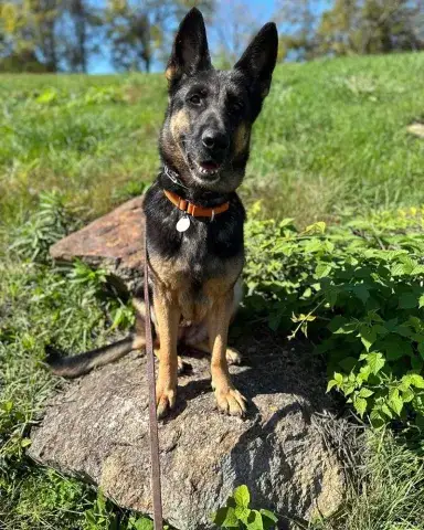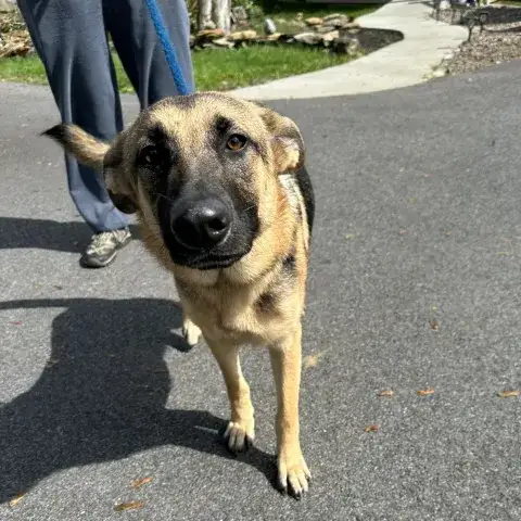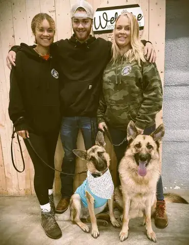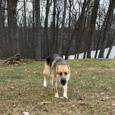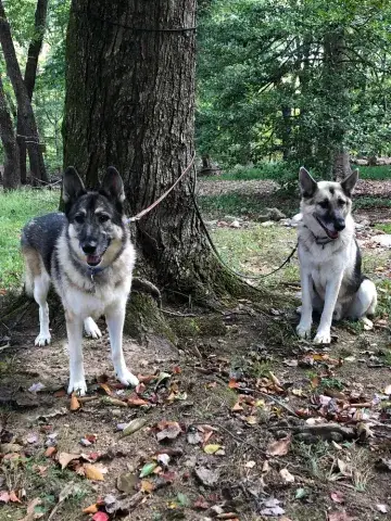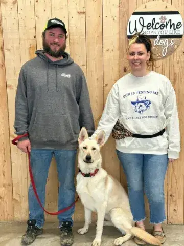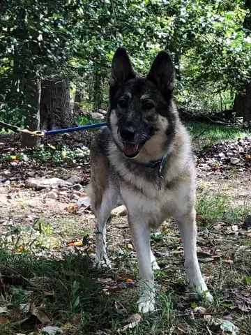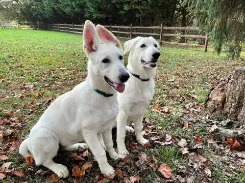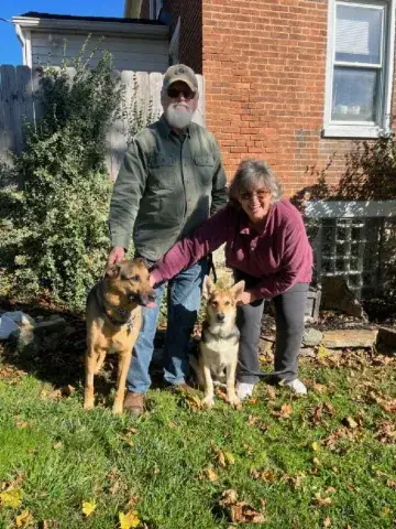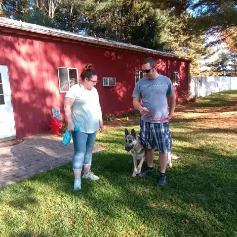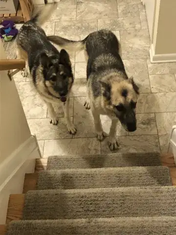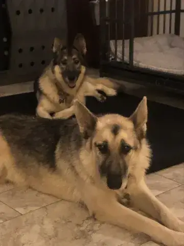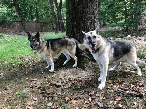 These dogs definitely have a special bond. King is the lover, he leans in for attention and has no problem being pet for hours on end. Although definitely a cuddler, King also enjoys playing ball and squeaking toys. He notices when anything is close to the house and alerts like all good shepherds do. Duchess is the life of the party. She is active, inquisitive, and always on point. She also enjoys some good head scratches but only for short periods of time before she is off on another exploration. Together they compliment each other very nicely. Although socialized with other large dogs, Duchess and King do best when given some time to adjust to other big dogs. Once comfortable, they like to be with the pack. Although they have had some exposure to small dogs and smaller animals, these two have too much prey drive for smaller creatures and would be happiest in a home without little furry friends. Comfortable with people, Duchess and King like making new friends; however, Duchess can take some time to warm up particularly to men. Given time and patience, they are loyal and beyond loveable companions.