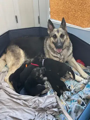 Over the last several weeks, MAGSR has been fortunate to have a groomer, mobile vet, volunteers, and an amazing foster family working together to ensure that Mama Maxie and her family have everything they need. This has helped them thrive. Now that the babies and Mama Maxie are just about ready to find their forever homes, it is time to share them with the world. Mama Maxie is clearly a special girl. She loves her people and is always ready for some hang time. Intelligent, affectionate, and clearly well socialized, Maxie has brought endless smiles and happiness to her foster family. Although Maxie does enjoy her time out and about and will need daily exercise, she also loves sleeping in the sun spot inside. She is hoping her forever family has some good windows that will let in the sun's rays as well as give her the chance to keep an eye on the world outside. Mama Maxie, just like her babies, will be ready for adoption on 10/14/23. As is true of all shepherds, Maxie will thrive in a household that provides her with the structure, routine, and leadership all GSDs need to meet with success. Training will go a long way with Maxie. Not only will it help her develop a strong and healthy bond with her forever family, but it will also help her develop into a good canine citizen.