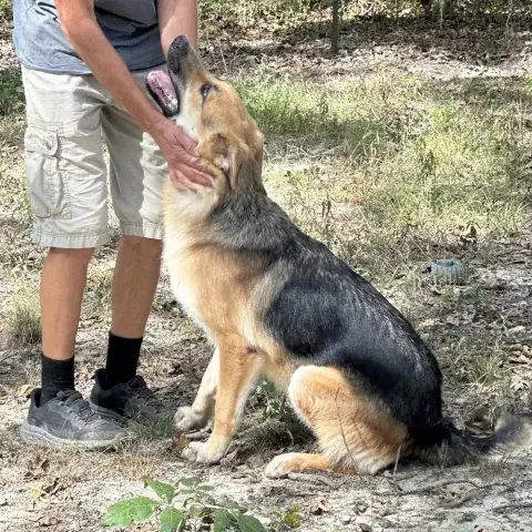 Winchester is definitely a handsome guy both inside and out. He is social, energetic, and intelligent. Clearly well socialized with other animals, Winchester understands many of the social rules needed to meet with success with his furry friends. Also well socialized with people, Winchester is interactive and playful. As is true of all young shepherds, it is critical that his family continue to provide him with the structure, routine, leadership, and socialization needed to meet with success. Winchester was lucky to have been placed with a foster family in the south while waiting for a forever family. This family began working with him to understand the ins and outs of a household. Clearly a quick learner, Winchester began picking up skills quickly. Although he has had success in the home, Winchester will, just like any new dog, need time to adjust to the rules and expectations of his forever home. Winchester is excited to go to training with his family. This experience will not only help him create a strong bond with his family, but it will also help him develop the skills he needs to be a good canine citizen. Winchester is looking for a forever family that will cherish him for a lifetime. Could that family be you?