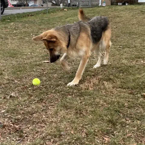 As a young, active shepherd, Deacon is looking for a family that can exercise his body and his mind on a daily basis. True of all shepherds, pent up energy can result in unwanted behaviors. He is the epitome of the saying - "A tired dog is a good dog." Excited to match with a family that will provide daily opportunities to run, play, and train, Deacon will thrive with a routine that provides mental enrichment. Well versed with a variety of toys, this majestic fluffball absolutely loves soccer balls, lacrosse balls, squeaky balls, textured balls, really any ball he can chase and chew on! He also loves bones.. but sometimes he needs an extra reminder or two when asked to give them back! Deacon loves playing tug of war with his toys, wrestling with his humans, and he even does great at doggy day care. However, as is true of all dogs, it is important that Deacon develop relationships with other dogs in controlled settings over a period of time.