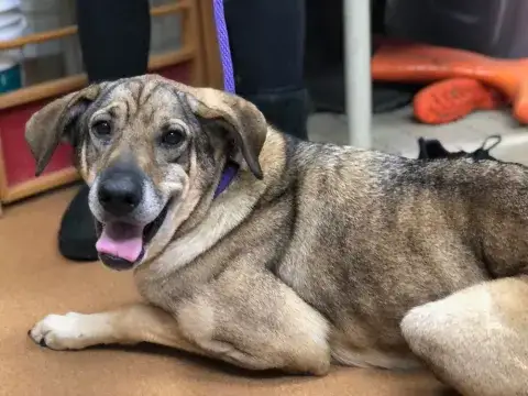 Gemma is a lovely girl. In her previous home, she lived with kids and other dogs. It was reported that she greatly enjoyed the children in her home. Although Gemma has clearly suffered at the hands of her previous family, she has been friendly and interactive with the volunteers she has met. Our volunteers have been very impressed with her sweet and stable nature.