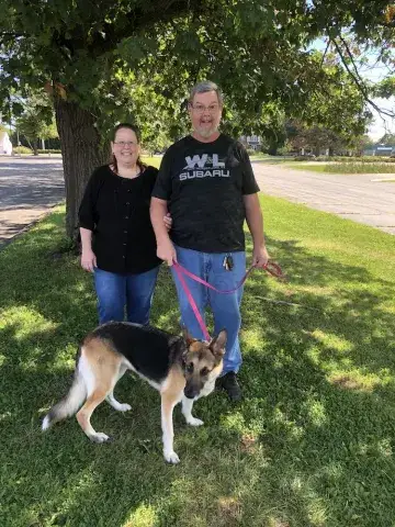 *Update* Tasha’s fosters are thrilled that this precious girl is heartworm free! She is looking for a forever home where she can enjoy company most of the day with hugs and head-to-head snuggling. She’s a low to moderate energy GSD and is gentle in all ways. While she has not shown much interest in other dogs, her fosters continue to work on her socialization skills. She enjoys walks that give her opportunities to sniff and stroll and is not affected at all by other passing dogs. Training also continues as we all work together on basic commands.