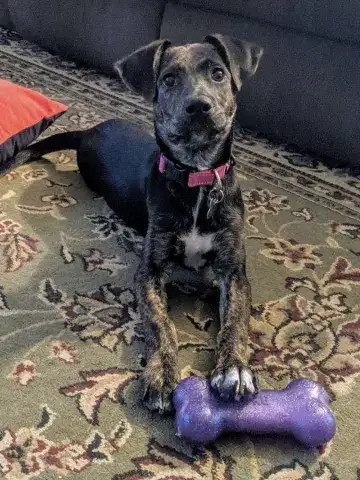 Carla is a bundle of energy and joy. She is cute as a button and brings happiness to everyone around her. Well socialized in her foster home, Carla is a match for a household with kids, cats, or other dogs. Although Carla's foster family has given her an excellent start, it is imperative that they continue to keep Carla well socialized. This will help her develop into a stable adult. Although Carla is absolutely adorable, please remember that puppies are a lot of work and require a lot of attention from their family. Puppies are full of puppy antics, they get into things, and they will chew on inappropriate items. With time, patience, and training, Carla will develop into the good canine citizen that we know she is destined to become. If this little girl sounds like the right match for your family, ask to meet her today.