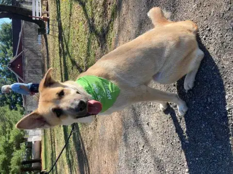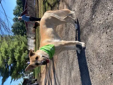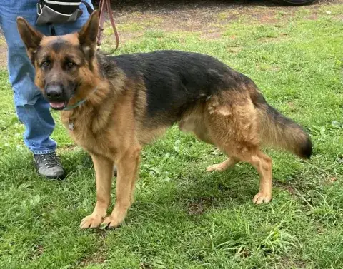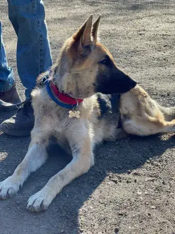 Kaito is a big, interactive, and energetic guy. Having previously lived in a busy household with small dogs and older kids, Kaito enjoys the company of others. However, he is a big guy so he would be best suited for older children. Kaito is social and enjoys the company of other people; however, he needs time to adjust to new people. He is responsive to calm and confident handlers. Kaito's family clearly did a nice job giving him opportunities to socialize with other dogs and meet with success in new situations. Kaito, just like all GSDs, will thrive when provided with structure, leadership, and routine. Food and toy motivated, Kaito loves to learn new skills and will be a star in training class. Starting training with Kaito will help him not only bond with his new family, but it will also help him develop into the good canine citizen we know he is destined to be. Kaito is looking for a forever family that will provide him with a safe and loving forever home as well as a lot of belly rubs. Could that be with you?