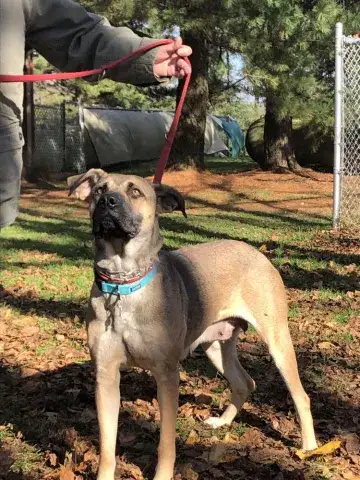 Honey lives up to her name. She is a lovely girl. Having been well socialized with people and animals, Honey gets along well with just about everyone. She has lived with dogs, cats, chickens, and ducks without issues. As a young, big, and energetic girl, Honey will need daily exercise for both her body and mind. This will help her burn her energy appropriately while also stimulating her mind. Training will be very beneficial for Honey as it will not only help her bond with her new family, but it will also help her become a good canine citizen. If Honey sounds like the right match for your family, please ask to meet her today!