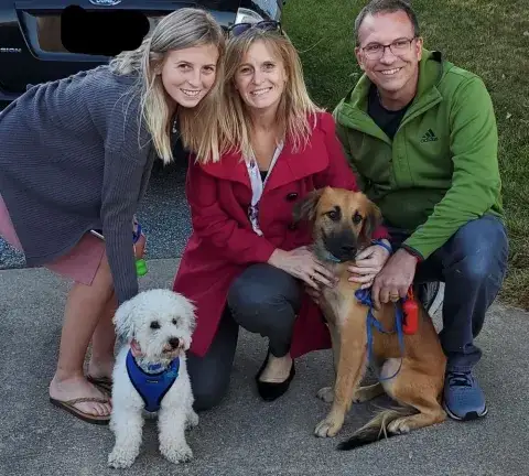 Gemma and her sister, Requi, lived with a family who got tired of having dogs so they left them outside leaving the dogs with limited resources. As if this wasn't hard enough, the family then decided to move away and abandoned the girls along with two other dogs on the property. Another rescue group heard about these traumatized pups and decided to try and intervene. That's when MAGSR got a call. As MAGSR has a policy of never leaving families behind, we brought all 4 dogs to safety. Fortunately, MAGSR was able to work with other rescues to find safe homes for the two additional dogs on the property.