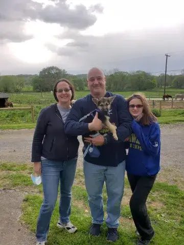 Milton and his brother, Teddy, are siblings from different litters. They were living with their parents and a few other dogs on a breeder's property. When the owner could no longer keep the dogs safe, they were surrendered to another rescue. Recognizing that both boys would likely have their best shot at finding their forever home in another region, Milton and Teddy were transferred to MAGSR.