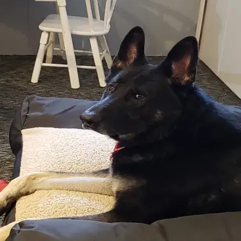 Dodger is an absolute joy. He brings immediate smiles to the faces of everyone he meets. Full of puppy wiggles and antics, Dodger has all the fabulous qualities of your typical GSD puppy. Although Dodger is a sweetheart, please remember that puppies are a lot of work and require a lot of attention from their family. Puppies are full of puppy antics, they get into things, and they will chew on inappropriate items. With time, patience, guidance and training, Dodger will develop into the good canine citizen that we know he is destined to become. If this handsome guy sounds like the right match for your family, ask to meet him today.