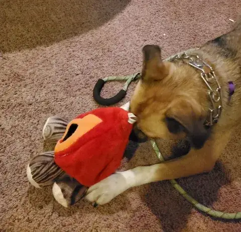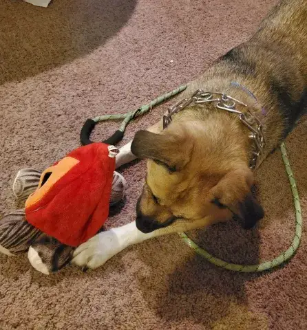 After a rough start to life and difficult circumstances in another state, Rusty found his way to MAGSR six years ago. This lucky guy found a loving home with all adults quickly, but due to circumstances beyond their control, his family made the extremely difficult decision to return him to MAGSR as they knew that we would find the home and love he deserves. Rusty is an incredible guy. This big guy has energy and intelligence to spare. As a result, he will do best in a home that can exercise both his body and his mind daily. He knows several commands and with good leadership follows through nicely. A toy guy, Rusty enjoys playing with plush toys and can be found carrying them about the house. He’s not much of a ball guy; however if given the opportunity, he will catch the ball a couple times and run around with it.
