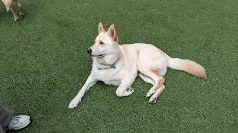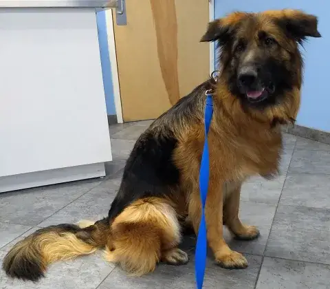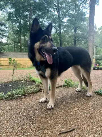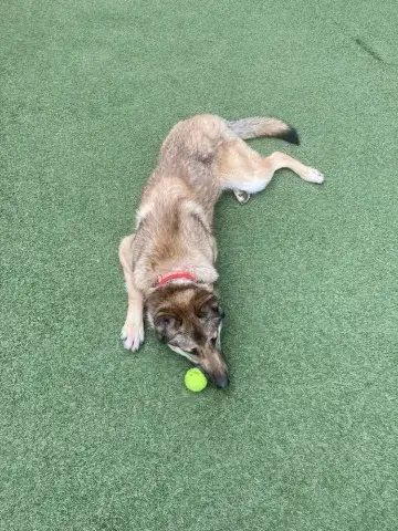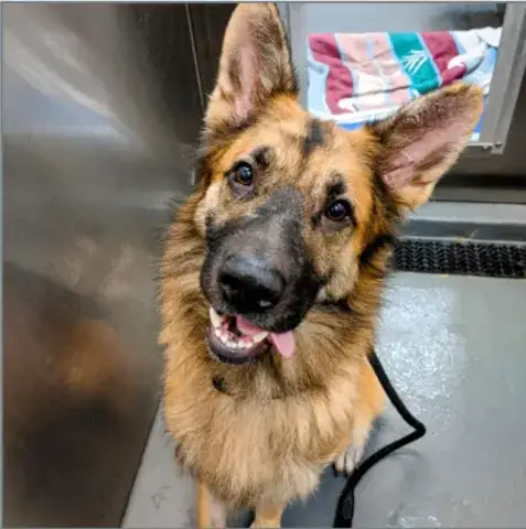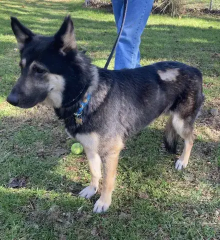Lucas is a friendly, playful, and intelligent guy. Unsurprisingly, he does like to see what he can get away with when being handled. He has your typical GSD shenanigans going on. Although Lucas was a stray, he is interactive and affectionate. It is obvious that this guy was well socialized with people and dogs. As a young dog, Lucas will thrive with structure, clear routines, and leadership. He is beginning to learn basic manners and how to walk on leash without pulling. However, Lucas, like all dogs, will need training. Training will not only help him bond to his forever family but it will also help him develop into the good canine citizen we know he is destined to become. Lucas is looking for a family that enjoys an interactive dog, playtime, and lots, we mean lots, of belly rubs. If this boy sounds like the right match for your family, ask to meet Lucas today.