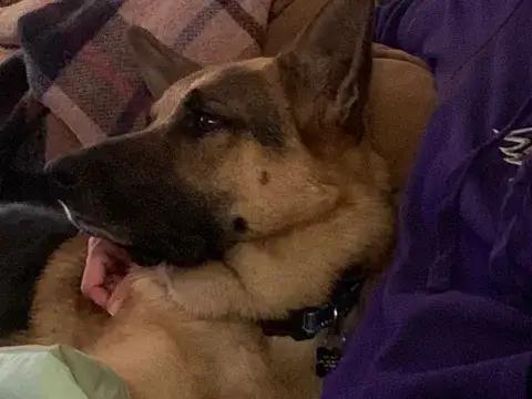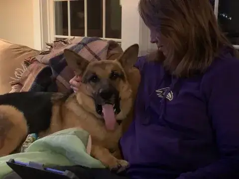 Onya, previously known as Onion, was adopted by her mom a few years ago. They were an incredible team. With the help of her mom, Onya completed basic obedience, started scent work, and had the opportunity to develop more advanced skills. They brought endless joy into each other's lives with activities during the day and plenty of cuddles at night. It was beyond evident that these two were meant for each other. Everything was going according to plan and it seemed like they would bring joy to each other for many years. Unbeknownst to the pair, an unimaginable medical diagnosis was looming. Onya's mom received news of a terminal illness that would upend their perfect world. When she realized that Onya would need a safe place to land, Onya's mom contacted our team, shared her story with us, and asked for help. Our team did everything we could to bring comfort to this family and welcomed Onya back to MAGSR.