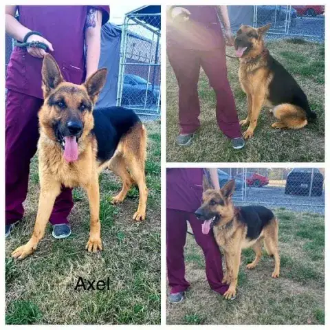 Axel is a young, energetic, and intelligent guy. He is looking for an active and experienced household that will provide him with the structure, routine, and leadership that all shepherds need. As the only male in the family, Axel seems to have been mistreated more than the other dogs. He can be hand-shy and head-shy, particularly, when fast movements above his head are used. Coming from a situation with little opportunity for affection or interaction with the world around him, Axel is taking every opportunity to explore and enjoy life. He is quickly discovering that people can be kind. Once he knows that you are safe, Axel leans in for head rubs and attention. As is true of all young dogs, Axel will need daily exercise for both his mind and his body. He is already beginning to learn a few basic commands and seems beyond happy to work with his handler. As a food motivated and smart guy, Axel will be the star of training class. Continued training will be an essential piece as Axel moves forward. Training will not only help Axel develop a healthy bond with his family, but it will also help him develop the skills needed to be a good canine citizen. Continued socialization is also critical for Axel as he has spent his first two years with limited interactions. Providing Axel with opportunities to interact with other people and other animals in a controlled manner will help him develop essential foundational skills that he missed while chained up. Axel already seems to be very social with the dogs in his family. They all seem to seek him out for comfort.
