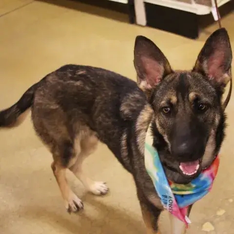 Dutchess is a loveable, playful, intelligent girl. We are so excited to help her move forward. A definite fan of other dogs, Dutchess is under the impression that all other dogs should be her furry friends. Clearly, this girl was well socialized with other animals. Although really good with other animals, Dutchess does need a small pause when meeting new people. Given a chance to adjust, she is interactive and friendly. Dutchess, like all other young shepherds, will thrive with structure, routine, and leadership. As a young dog, she will need to exercise both her body and her mind on a daily basis. Training will also be key to Dutchess' transition in her forever family. Training will not only help her form a strong and healthy bond with her family but it will also help her develop into a stable and confident adult. Dutchess is looking for an active family that will commit to her for a lifetime. Could that be with you?