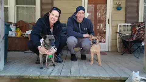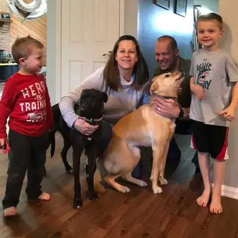 Gypsie and her family - Axel, Jackie, Genie, Sally, and Birdie - are victims of cruelty and neglect. All six dogs were living in horrific conditions. Chained in shower stalls, living in filth, abused, and starved, they endured unimaginable suffering at the hands of their owner. When word of their situation spread to local authorities, all 6 dogs were confiscated and charges were brought against their owner. Recognizing that these dogs would need significant support, a plea went out to see if they could be moved to the safety of a rescue. MAGSR answered that plea and immediately began working with local groups and animal services to get all six dogs the resources needed (medically and socially) to begin to move forward.