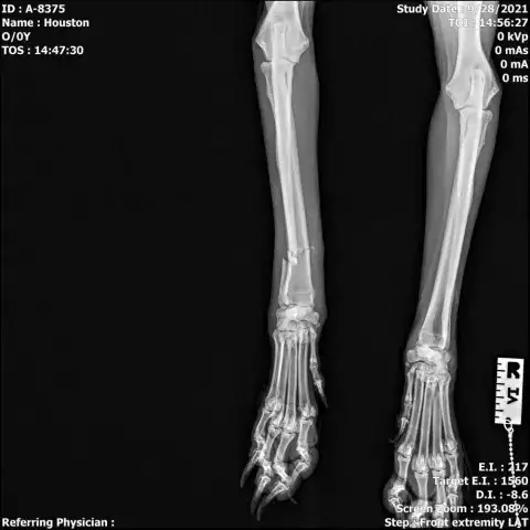 Houston is a stable, confident and friendly guy. Although we do not know what Houston's life was like prior to his arrival at the shelter, at some point he did know love. Known to shower his handlers with affection, Houston does tend to give wiggles and kisses when first meeting new people. He's simply a lovable guy. When Houston arrived at the shelter it was highly evident that something was wrong with his front right leg. He was non weight bearing as the lower portion of his leg was hanging from the carpal area. Upon closer inspection, it was determined that Houston has a right distal radial ulna fracture. This will need to be repaired by one of our surgical specialists. Unfortunately, Houston will need to wait a few weeks as he is also suffering from a rather serious upper respiratory infection. Although he is getting the additional attention and support he needs to recover, he will need time to heal before surgery.
