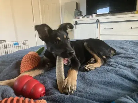 Andrew is in many ways your typical, young, energetic shepherd. He is curious about the world and is learning about the joys of toys. Although we do not know anything about Andrew's past, it is clear that he is ready to move forward with his future. As is true of all young shepherds, Andrew will be most successful in a household with structure, routine, and consistent leadership. This will not only help him adjust to his new household, but it will also help him develop an understanding of the expectations of living in a home. In addition, Andrew will benefit greatly from training; training will help him develop the skills and strategies he needs to develop into a good canine citizen.