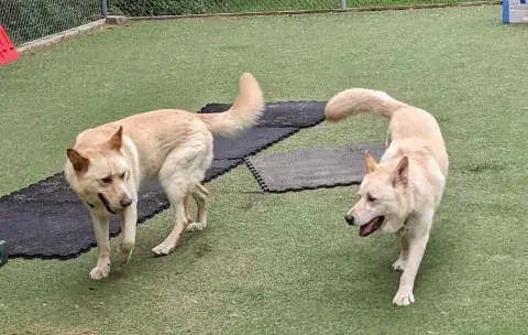 Jojo and Chloe were confiscated due to neglect. When they arrived at a shelter emaciated and unclean, shelter staff immediately started working to make these two sweethearts comfortable. Although steps were taken to help Jojo and Chloe begin to decompress in safety, staff knew that the shelter environment was not the right place to help this pair move forward. In order to help them find the comfort and safety they deserved, a rescue plea was issued. As soon as we heard about Jojo and Chloe, our team began putting together plans to help this amazing pair move forward.