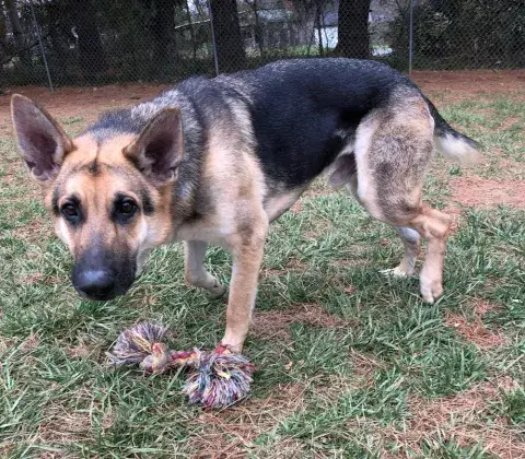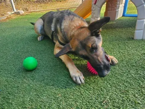 Luca means bringer of light. This name is quite fitting for this guy as this big, silly, playful guy keeps you smiling with his antics. Luca is a very large boy with a very large personality. He is looking for an experienced household as he portrays some strong GSD traits. As is true of all young shepherds, Luca will benefit from a household that will provide him with the structure, routine, and leadership that shepherds crave. Food and ball motivated, Luca is more than happy to work for treats and attention. In fact, this boy has already begun to learn a few basic commands. Luca knows sit, paw, and down. He also knows to out the ball when asked. Training is essential as Luca needs to learn to trust that this forever family will commit to him for a lifetime. In addition, training will help Luca develop into a stable and confident good canine citizen. If Luca sounds like the right match for your household, ask to meet him today.