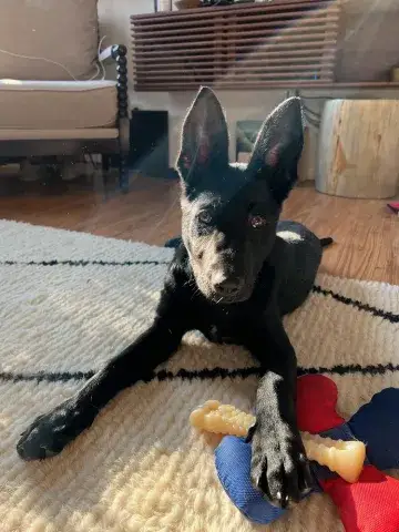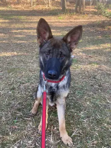 Mistletoe is in many ways your typical young shepherd. She is curious, playful, and energetic. A fan of the ball Mistletoe will happily run around with one but is still working on bringing it back. It's just too much fun to give it back. Highly treat motivated, Mistletoe will be a star in training class. In fact, she already knows a couple commands. Training will be critical to Mistletoe's success as it will not only help her bond to her forever family, but it will also help her develop into a good canine citizen. As a young girl, Mistletoe will thrive in a home with structure, routine, and leadership. This will further support Mistletoe as she develops into a stable and confident adult. Mistletoe grew up with young children and a cat. She did very well with both and would be happy to move forward with an active family. If this lovely girl sounds like a match for your family, please ask to meet her today.