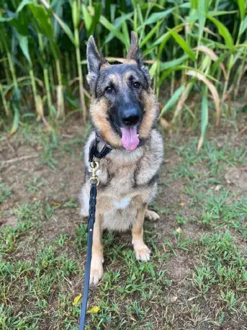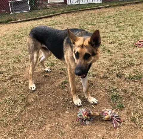 Katie Ann is an affectionate and friendly girl especially with her people. She greatly enjoys the company of the people within her sphere and seems to understand the ins and outs of living with a family. However, as is true with most shepherds, Katie Ann will overbond if given the opportunity. This can cause her to become overprotective of her people, her property, and her home. In order to meet with success, Katie Ann is looking for an experienced household that will work with her to develop a healthy relationship. Boundaries and clear expectations are very helpful to her success. Katie Ann will thrive with routine, leadership, and structure. Training will also go a long way with this lovely girl. Not only will training help Katie Ann bond to her forever family, but it will also help her develop into a good and stable canine citizen. Katie Ann has already begun to learn some basics with our volunteers, but she will flourish with continued training. Although Katie Ann can be walked calmly in areas with other dogs, she is looking for a home where she is the only dog. Best placed with a confident handler, Katie Ann is looking for an active family that will commit to her for a lifetime. If this lovely lady sounds like the right match for your household, ask to meet her today.