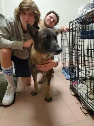 Titan's family loved him very much. Unfortunately, they had to make the difficult decision to surrender him to a shelter when they could not find appropriate housing that would allow for a GSD. Prior to his arrival at the shelter, Titan lived with kids of varying ages. His family made sure to keep him well socialized, even bringing him to work from time to time.