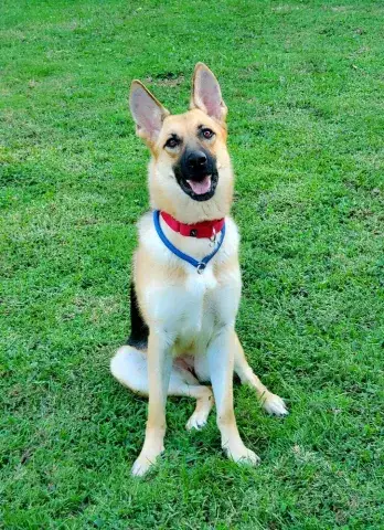 This happy girl came to us as a stray. She is a sweet dainty girly girl that found herself with animal control and no one came for her. Although she can be shy with new people, Elke is a people pleaser and loves to socialize once comfortable. Typical of a young shepherd, Elke has some puppy energy and is a joy to be around. She loves squeaky toys and playing ball outside. She will get a bit mouthy when excited, but she will stop when corrected. At this time, Elke is in a loving foster home learning about house breaking, crate training, and general household manners. If Elke sounds like a good match for your family, please ask to meet her today.