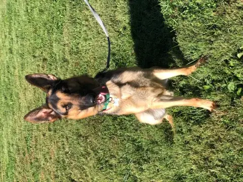 Piper is a very lovable young lady after she gets to know you. In typical German Shepherd fashion, she is hesitant with new people especially if they are scared or unsure of themselves. She responds well to confident people, and then is eager to please. Piper needs to be socialized with strangers under the supervision of a confident handler. She is a young lady with lots of energy so exercise and training will be a must to keep her on her best behavior.