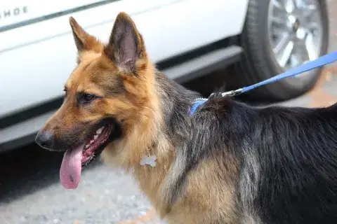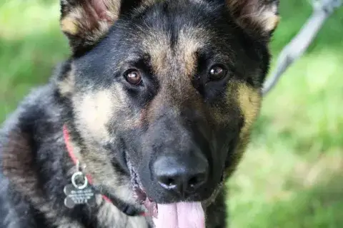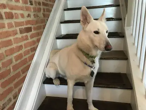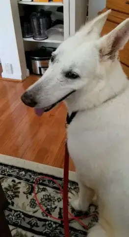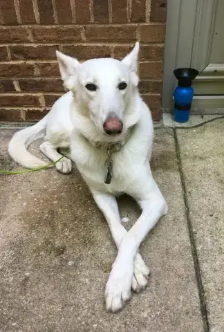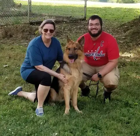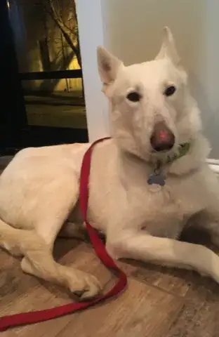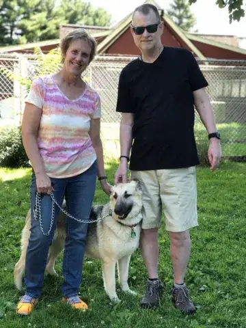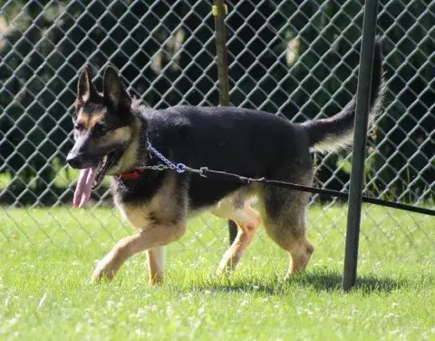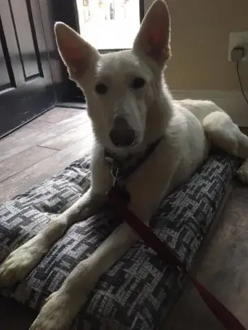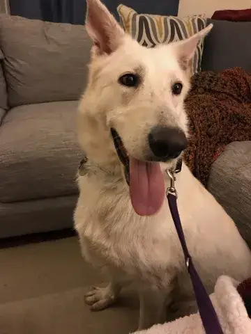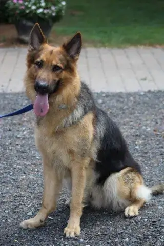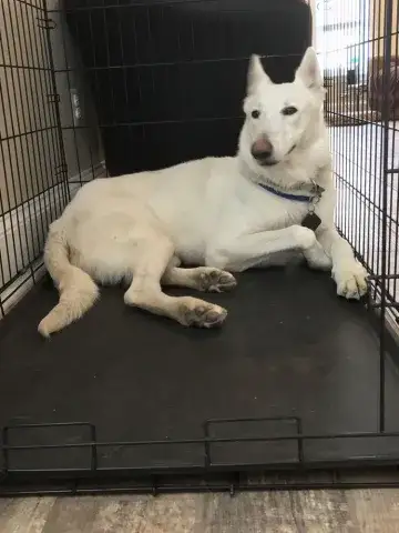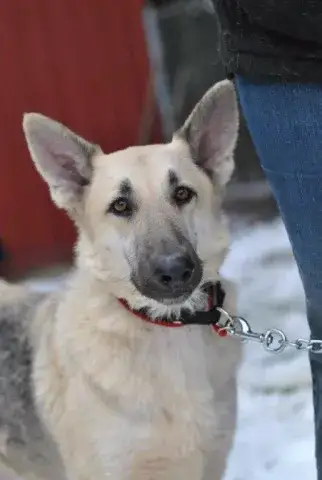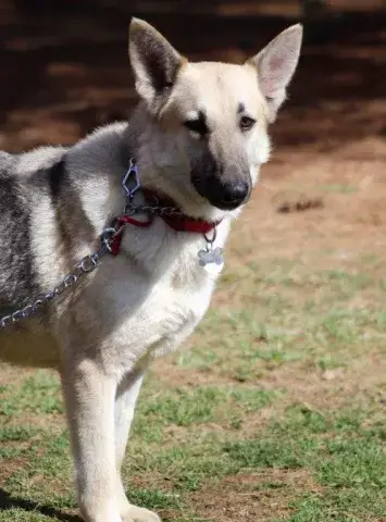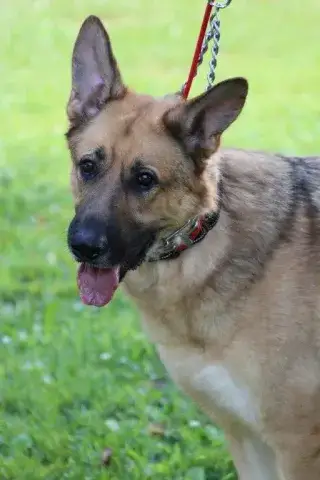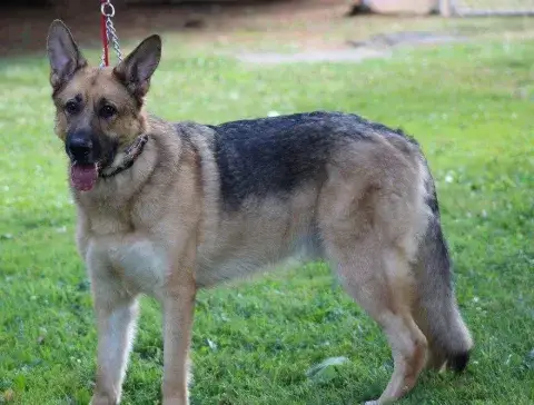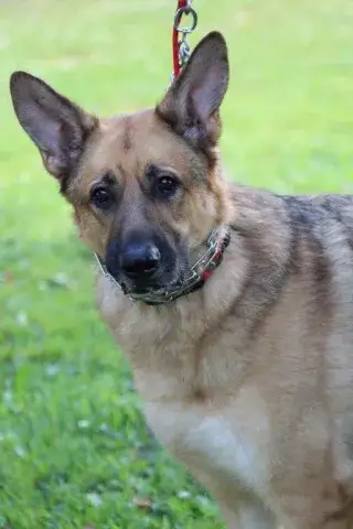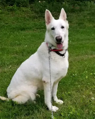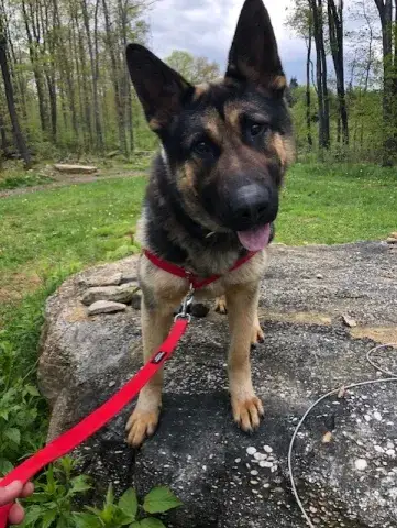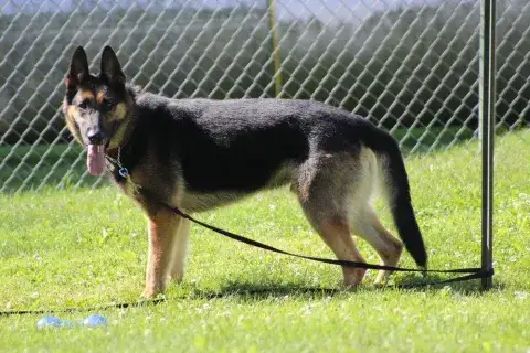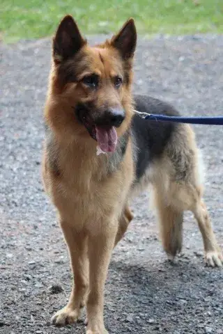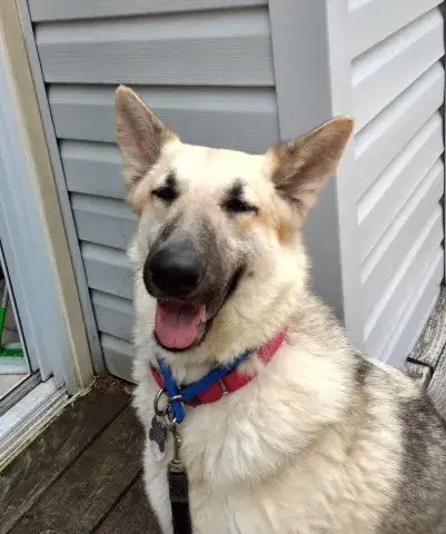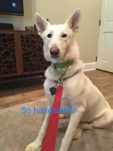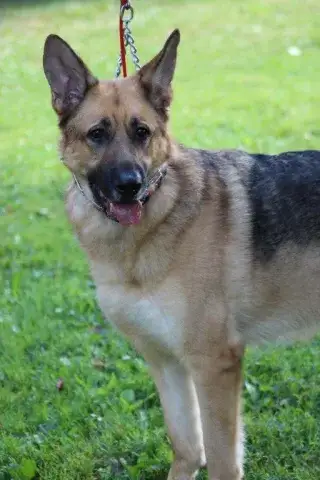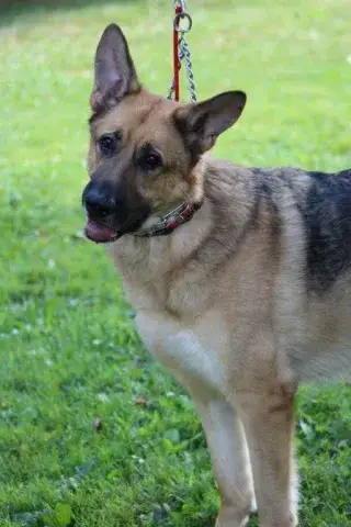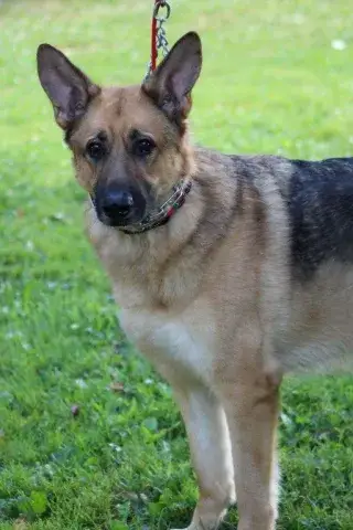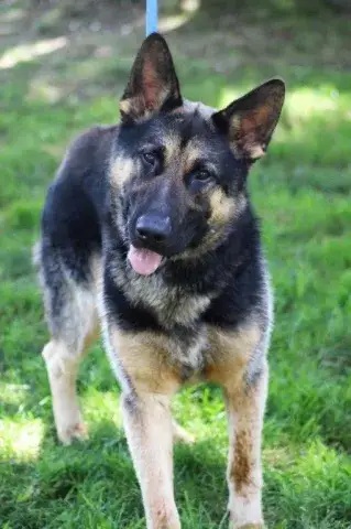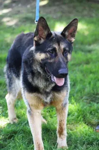 Klaus was surrendered to us as the female dog in the home was jealous of him. Klaus is a very big, strong boy weighing 103 lbs. it is imperative that he attends obedience training. He will learn good manners and leash skills, which is very important with a dog this large. Training will also help his family set boundaries and learn to properly handle/manage him. He needs to learn some house rules, such no counter surfing, no eating from the trash, no chewing things that aren’t his etc.. He does best with non-dominate dogs. He lived in the home with a cat, after proper introductions he did well.