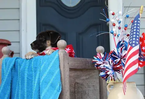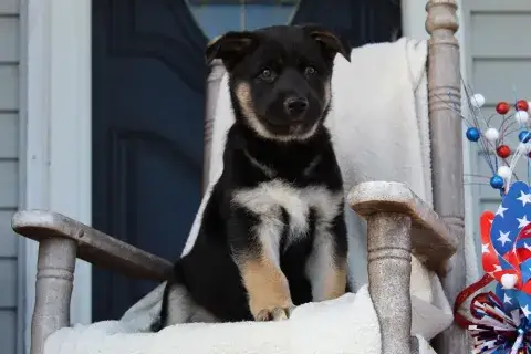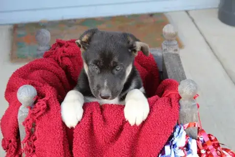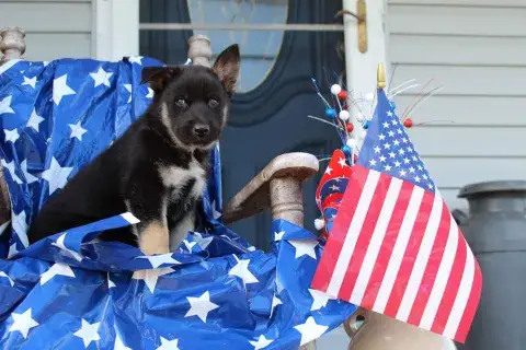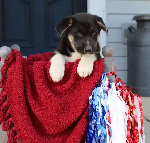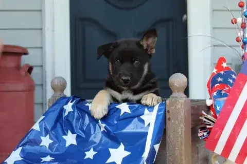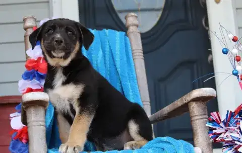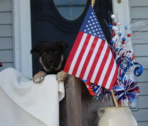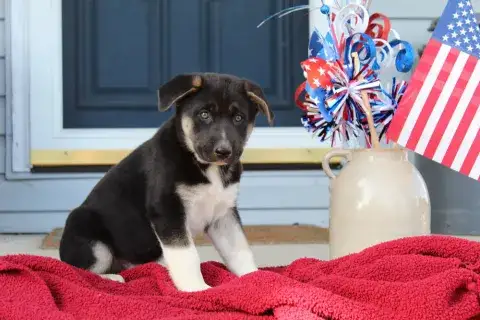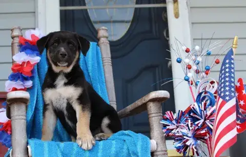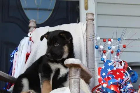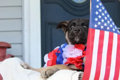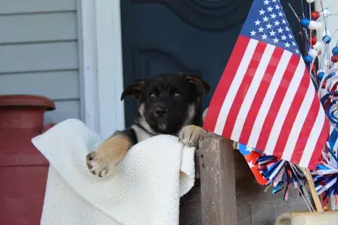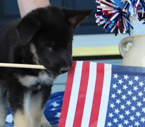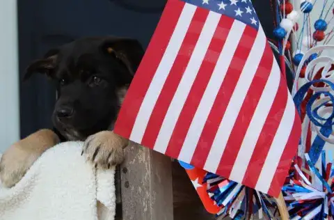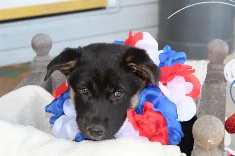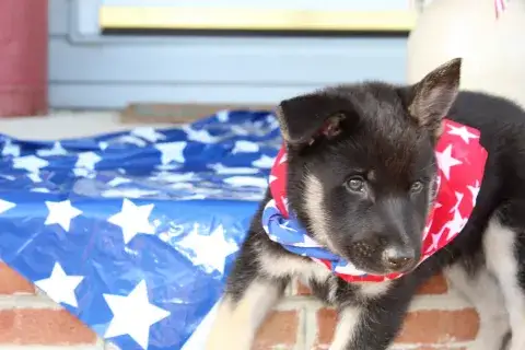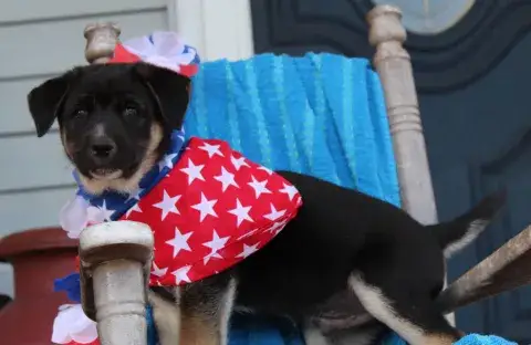 Meet the Independence Puppies! Patriot cannot be any cuter and is absolutely a great little boy, happy go lucky and loves to give puppy kisses. Patriot has a lot to learn about going a good canine citizen and will require training. Please remember that puppies are a lot of work and require a lot of attention from their family - puppies are a ten to twelve year commitment. Puppies are full of energy and can be mischievous – they will whine, have accidents, get into things, and chew on inappropriate things. With time, patience, guidance and training, Patriot will become even more of an amazing boy than he already is. If interested and he sounds like a good match for your family, please submit an adoption application! Patriot will be available for adoption on July 13th at 8 weeks old.