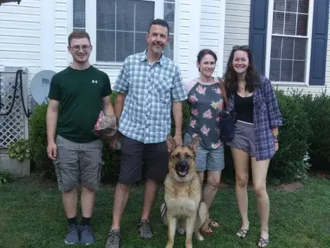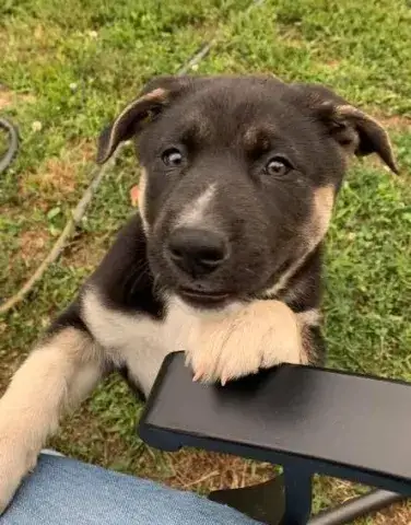 Darby came to us as a surrender as his family did not have time for him. Puppies take a lot of time, they need to be potty trained, taught not too chew on things they shouldn't, socialized outside of the family, taught leash manners, provided with lots of exercise and training. They do best when provided with structure and exercise to burn off their puppy energy. They are a lot of work but well worth the effort if you have the time and are willing to make a commitment for their lifetime. Darby will need all of this, he will have you laughing and at times frustrated but he is very worth it.