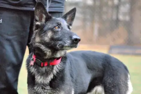 Seth was abandoned by his person at a friends home and never returned for him. He is understandably confused with the recent changes in his life causing some anxiety. He lived with a female GSD and was around cats without issues. He did live with children but did not have much interaction with them, so we do not know how he would do with children. We are giving him time to settle in and will post updates once we know him better.