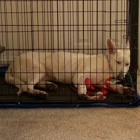 Rhee lost her family and home as her Military family were stationed overseas until 2022. Rhee was staying with a family friend but unfortunately did not adjust well and was not getting along with the other dogs in the home. Rhee will require time to adjust to yet another change in her life, a family with patience that will provide structure is best. She lived with children since she was 11 months old with no issues. She has been through professional obedience training, but a refresher course with her new family is required.
