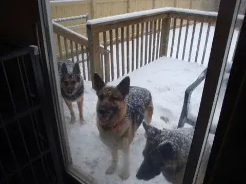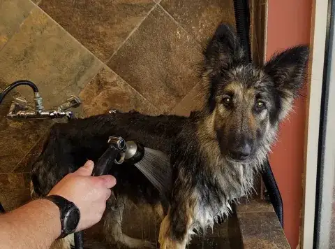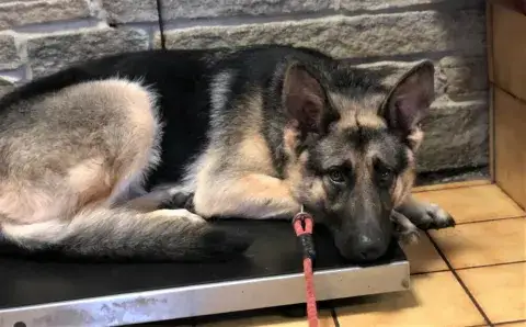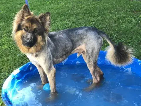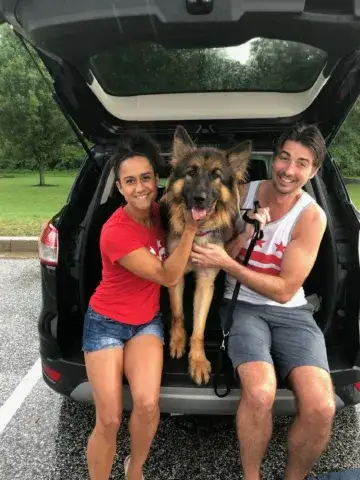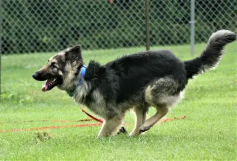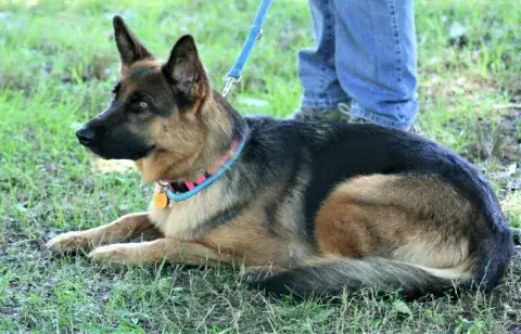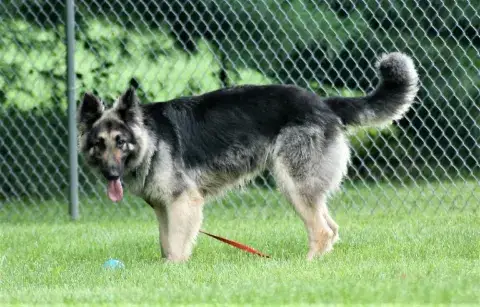 Unfortunately Oso was returned to us. Family members moved into his home, after he had lived there over a year, with small dogs that Oso did not get along with, so he got the boot. He was fine with the neighbors female GSD. He came back to us over weight so he has been put on diet, that along with exercise he should be down a good weight in no time.