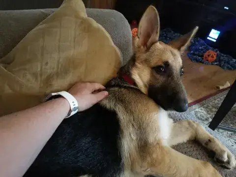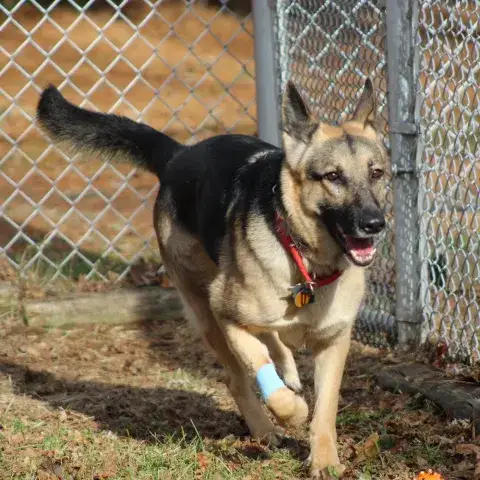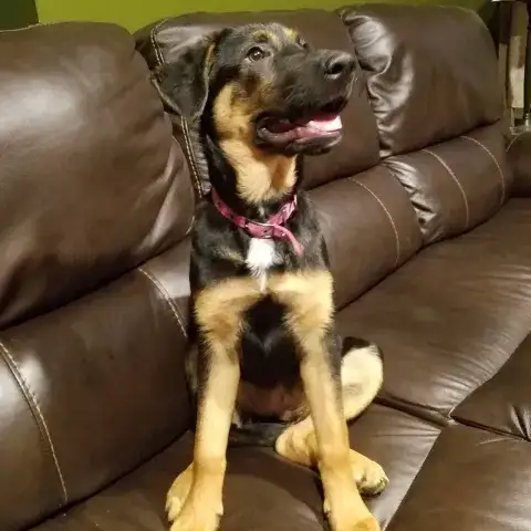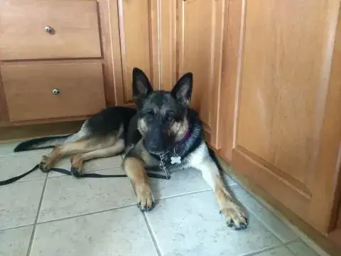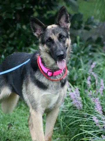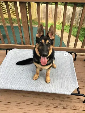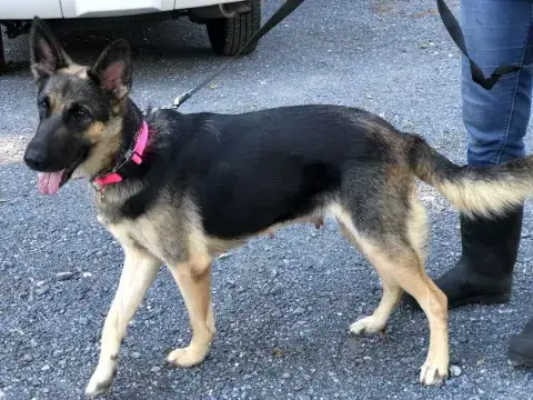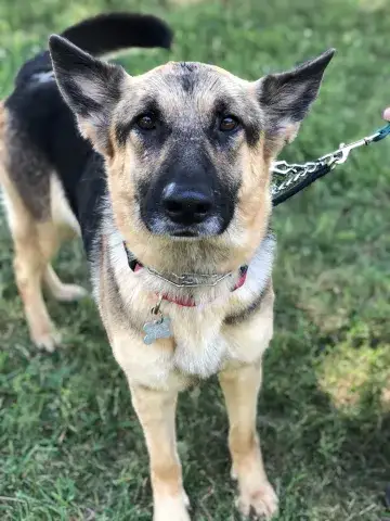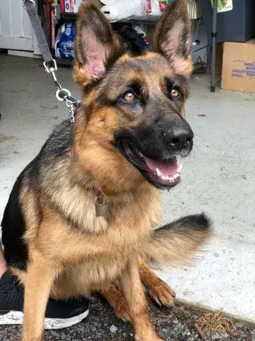 Glory came to us from a shelter so we have no history on her. Since arriving in our care she has been friendly. She previously lived wth another GSD. She of course needs training, which help her learn good behavior and manners. Glory is adjusting to living in a foster home, watch for updates.