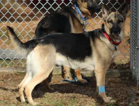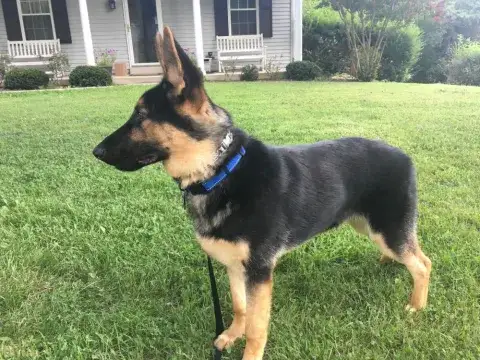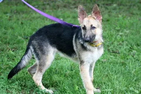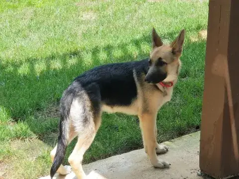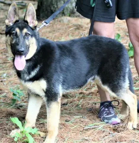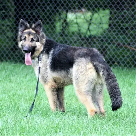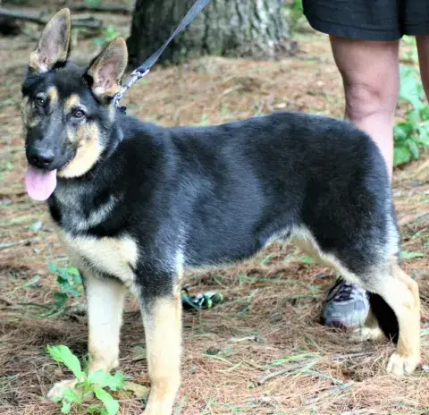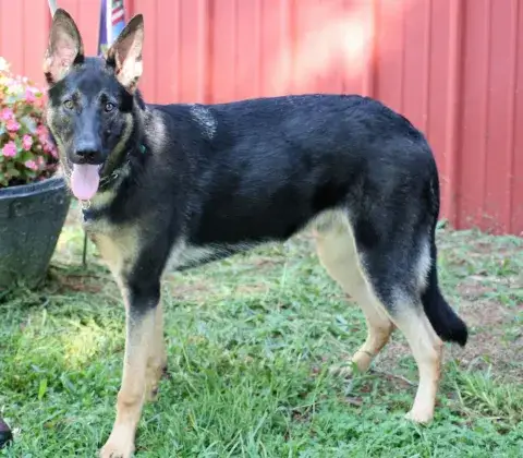 Rocky was an owner surrender as his person had no time for him. It is so important when taking on the responsibility of a pet that you have the time and patience to work with. Rocky is a 6 month old untrained big puppy. He was not taught any manners, nor were his puppy behaviors addressed. He will jump on people, he is mouthy, will chew things he shouldn't and have accidents in the house. He is in need a good training program and a family that will teach him acceptable behavior. Socializing him with lots of people and other dogs is critical, as it is with all dogs. Due to his lack of manners we will not place him in a home with very young children. He will need a strong leader who is willing to work with him and burn off his high puppy energy. Prior puppy GSD experience is required.
