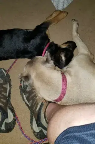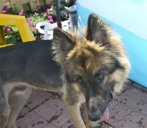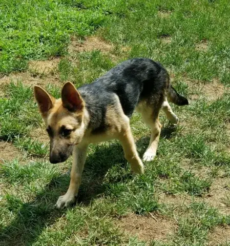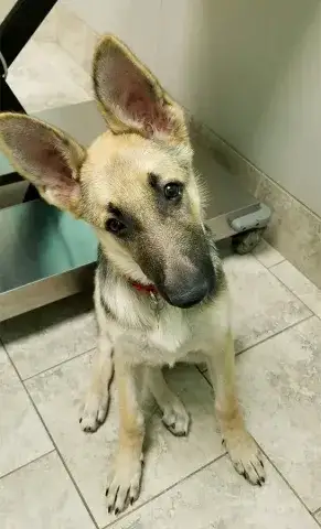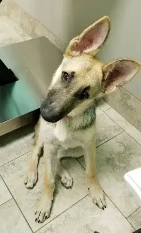 Luna along with other family members were dumped at shelter. Not often we are happy when dogs are dumped at shelters, but in this families case they are lucky they were. The family of Shepherds lived outside, no vet care, no vaccines, no preventatives. They were all crawling with fleas and ticks. When Luna arrived we noticed she has lazy eyes and was uncoordinated, along with a lump on her head. The vet did a thorough exam, Luna's eye sight seems fine, but the vet feels that she may have suffered from head trauma which caused the lump and the unsteadiness. She may or may not improve with time. With all of that aside she is a beautiful, playful and curious puppy. She deserves a special family who sees the beauty she is. Please be prepared for a puppy as they are time consuming, they need training, socialization, lots of exercise and a lifetime of love and care. Yes, puppies chew things they shouldn't, they get into things, they have potty accidents and they have lots of energy.