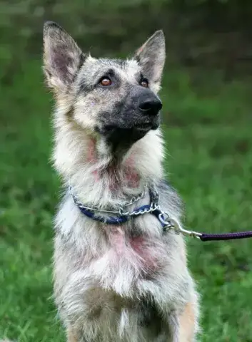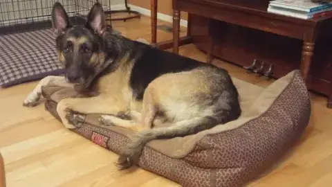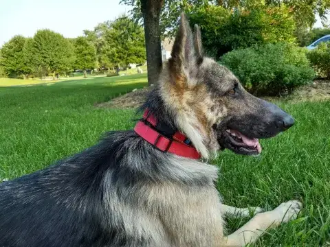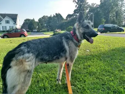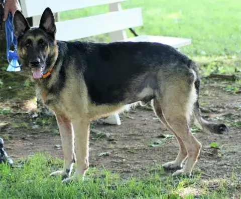 Grace came to us from a shelter we have no history on her. Since arriving in our care she has been friendly, she rides well in the car and did well at her vet visit. She previously lived wth another GSD. She of course needs training, which help her learn good behavior and manners. Grace is heartworm positive, this could have been avoided had she been kept on monthly heartworm preventatives. Grace is in the beginning stages of her heartworm treatment, which of course MAGSR is paying for her entire treatment. She will have to take it slow for the next few months while undergoes treatment, so lots of rest is in order.