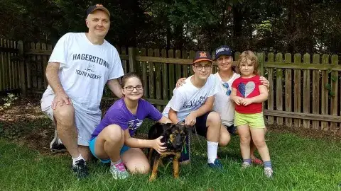 Murphy made his way to us from a shelter where he was a stray. We have no past history for him, so we are getting to know him. He requires a slower approach when meeting new people. He is in need of training which will help him learn good manners, build his confidence and bond with his new family.