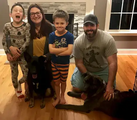Kona needs to be properly cared for around small animals because he doesn't always know his strength. He's mostly very easy going and loves to be loved and give love to his family. He loves walks and belly rubs and just laying around the house with his other fur friends and family.