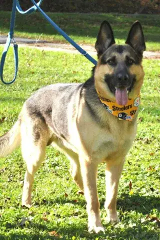 Ozzie's former person took ill and was no longer able to care for him. He was brought to the VA area by a family member and is now in our care looking for his forever family. Ozzie is a very big boy at 94 lbs He has undergone formal training but will require further training with his new family. He has not lived with dogs before but did well meeting another German Shepherd during our evaluation. Ozzie does have the tendency to herd (nip at) children, for this reason we feel it is best that he not be placed in a home with young children. A boy of this size can be intimating to small children and he could also accidentally knock them down. For the most past Ozzie's former person exercised Ozzie on daily 2 mile walks and lots of games of fetch. Daily exercise is key to keep energy in check, so please be sure you have the time to commit to his exercise needs, training and of course a lifetime of love and care.