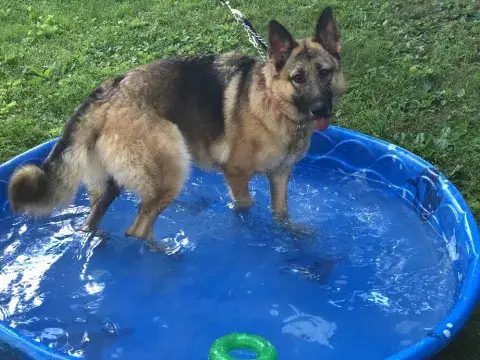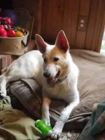 Kona has been to obedience training and was deemed a friendly, smart, stubborn dog. He has been gentle with a baby and toddler and never showed any aggression towards people. Kona thrived in a home with another Shepherd, cat, baby, and toddler. He would occasionally play a little rough with the cat but the cat ultimately always put Kona in his place. Kona does have a strong prey drive with small animals like squirrels and sometimes small dogs and cats.