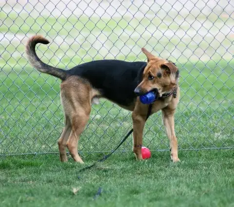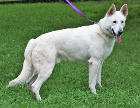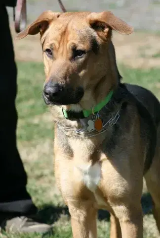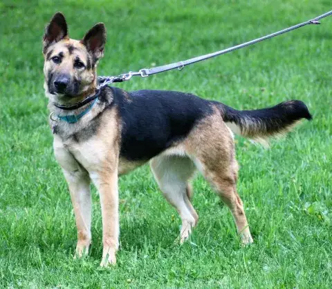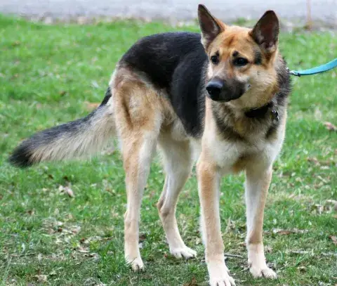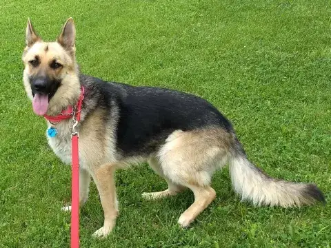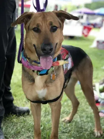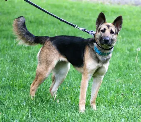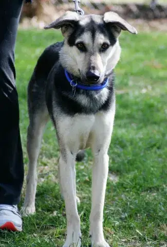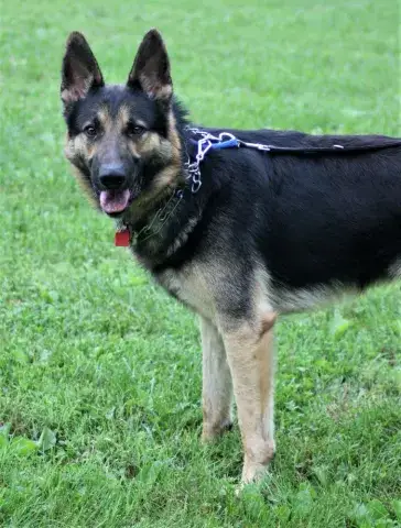 Ramsay made his way to our care from shelter, where he ended up as a stray. Ramsay is a handsome, approximate 2 year old male GSD mix. He takes a brief moment to warm up to new people, but once he does he quickly becomes your best friend. He likes to lean into his person, enjoys being petted and being with his family. He is a strong boy and pulls quite a bit when being walked, training will help this along with helping him learn good canine manners.