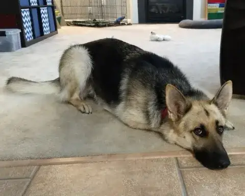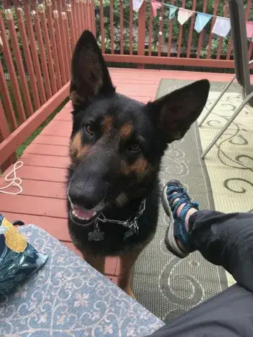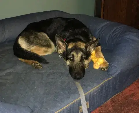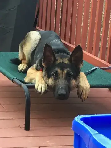 Dietra came to us as an owner surrender. She was much loved by her previous family which included young children and a male GSD. Dietra is a very sweet girl who is in need of a family of very own. Dietra did arrive in our care not putting weight on her rear leg, we had her seen by our vet who recommended she be seen by a orthopedic specialist. Dietra has an appointment scheduled for this coming week to see the specialist in order to find out, if anything, is wrong with her leg. Once we know we will post an update.