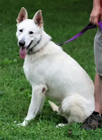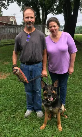 Peggy came to us from a shelter where she was a stray so we have no back history on her. She has been friendly and easy to handle since arriving in our care. She of course needs training to help her learn good manners and to learn what is expected of her. Training is also good socialization with other people and dogs, which this breed requires.