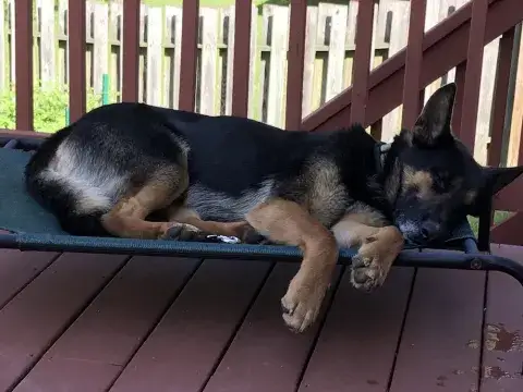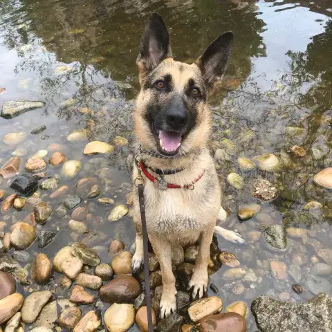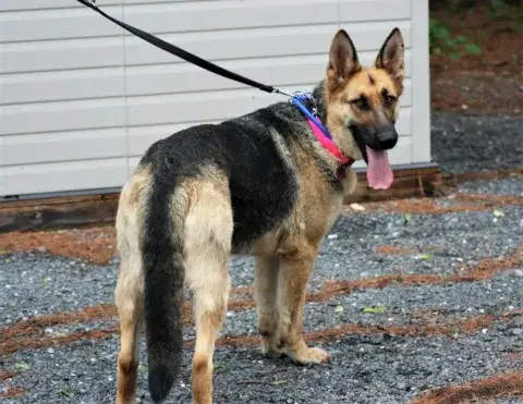 Harleigh was a stray and taken to a shelter. She is good with other dogs, She is a little shy, but she is just getting to know us. She is a petite girl, but very beautiful and easier to handle then the larger Shepherds.