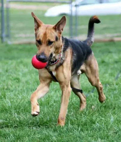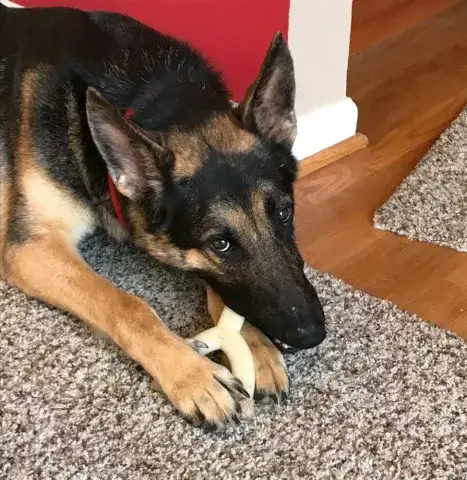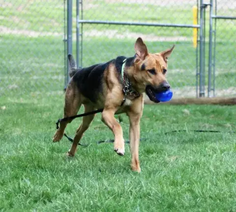 Reuger is a young, handsome boy who has been through basic obedience training. It is imperative that he continues training with his new family. Reuger is not good with small dogs and will not be placed in a home with small dogs. In his previous home he had escaped the home through an opened door and an electric fence going after small dogs in the neighborhood. He did live with a cat, getting along fine as long as the cat did not run around. He also lived with a female GSD and was fine with her. Reuger does play rough with other dogs, so another dog in the home must be playful and accepting of rough housing. Reuger also has the tendency to get mouthy with people when he is overly excited. Training, structure and direction can help with these behaviors. Reuger will do best with experienced GSD people, who have the time and knowledge to work with him.
