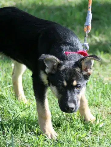 Kadian came to us a surrender, as her former person was not in the position to care for or keep her. At 14 weeks old she has a whole lot to learn. It is never too soon to start basic obedience training, as socialization with other dogs and people is very important, along with learning good puppy manners. Puppies will chew things, have accidents, get into things and have lots of energy, so please be sure you have the time and patience it takes to raise a puppy. Adopting a puppy is a commitment for their lifetime.