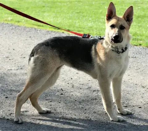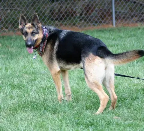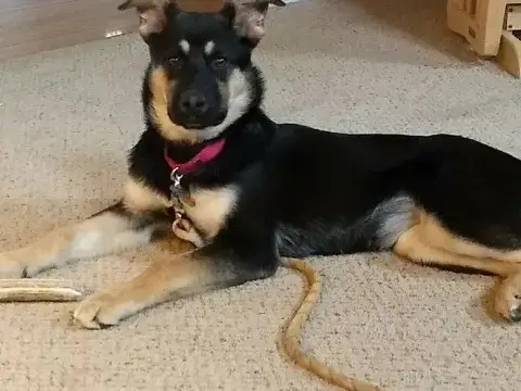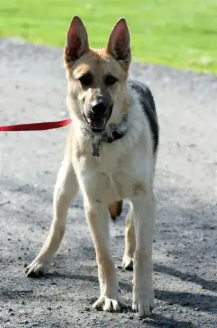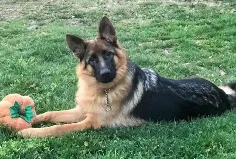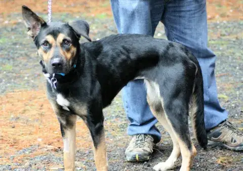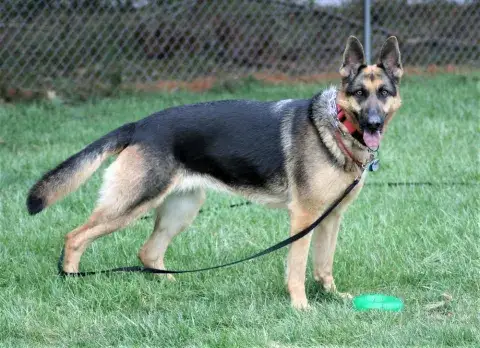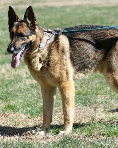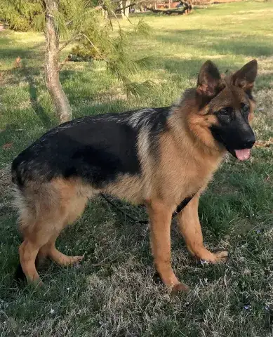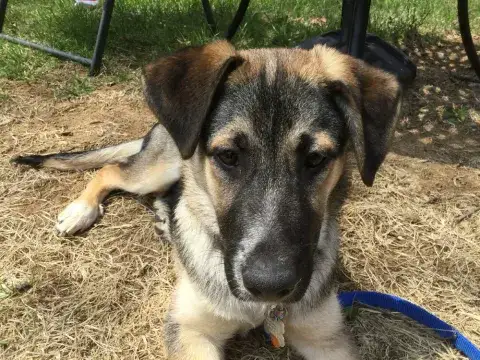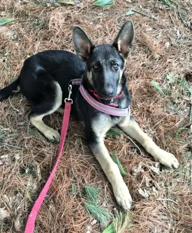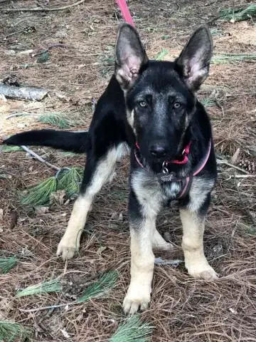 Sapphire made her way to us from a shelter where she had been surrendered by her former owners. They had told the shelter that she was good with children, dogs and cats. She is in a foster living with young children and another GSD and getting along well. We have not had her around cats. She is a young, energetic girl that has had no training or guidance. She's very trainable, she pays attention to her handler and is responsive to both food and praise. A good training program, guidance from her family and exercise to burn off some that puppy energy are in order for beautiful Sapphire.
