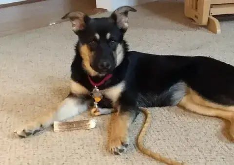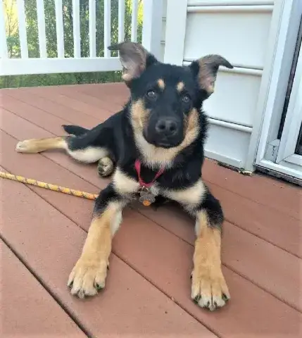 Aria and her sister Allie came to us from a shelter where they had been surrendered. We are told that mom is a purebred GSD and dad is purebred Lab. At 16 weeks old both girls have a whole lot to learn. It is never too soon to start basic obedience training, as socialization with other dogs and people is very important, along with learning good puppy manners. Puppies will chew things, have accidents, get into things and have lots of energy, so please be sure you have the time and patience it takes to raise a puppy.