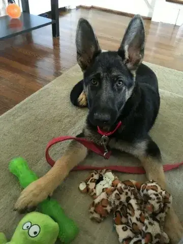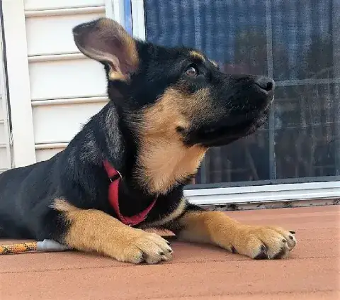 Allie and her sister Aria came to us from a shelter where they had been surrendered. We are told that mom is a purebred GSD and dad is purebred Lab. At 16 weeks old both girls have a whole lot to learn. It is never too soon to start basic obedience training, as socialization with other dogs and people is very important, along with learning good puppy manners. Puppies will chew things, have accidents, get into things and have lots of energy, so please be sure you have the time and patience it takes to raise a puppy.